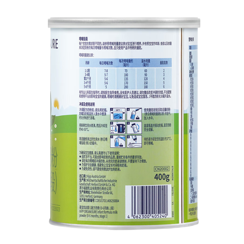 包装方式:包装 品牌:喜宝HiPP 包装单位:罐 原产地:德国