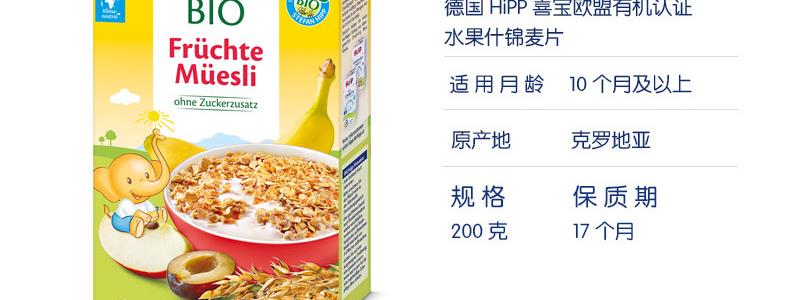 保税直供【保税直供】德国 喜宝(HiPP)有机多种水果儿童麦片粥 200g 10个月+
