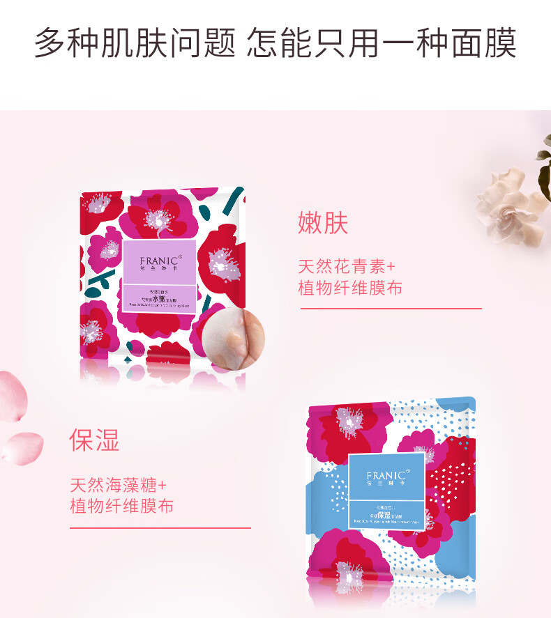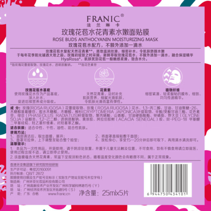 法兰琳卡水润紧致面膜 玫瑰花苞水花青素水嫩面膜【25mlx8片】水光亮润精华烟酰胺保湿 花青素水嫩 小弹簧紧致嫩肤 多规格