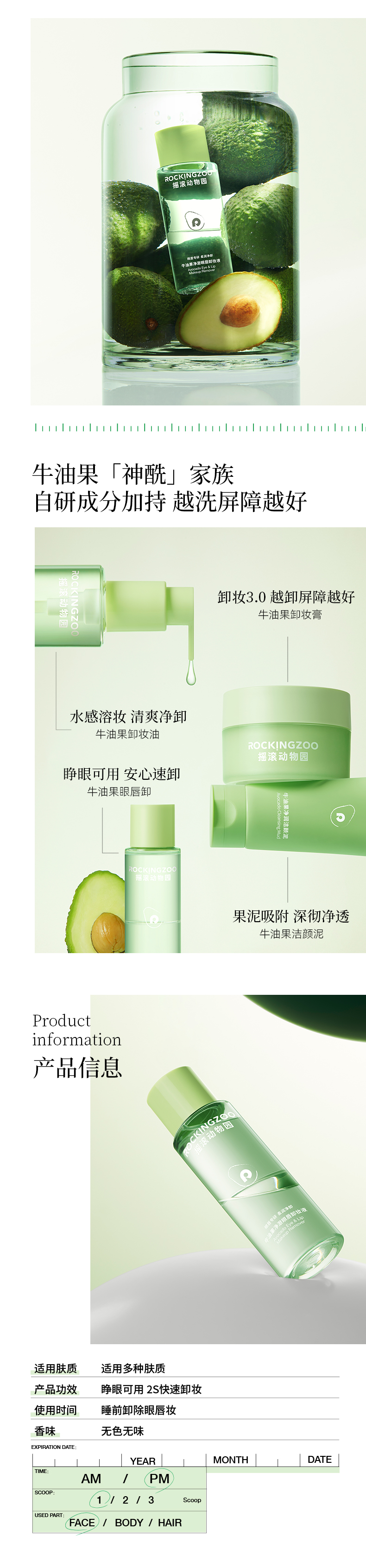 摇滚动物园牛油果净澈眼唇卸妆液 80ml 效期至2028年01月