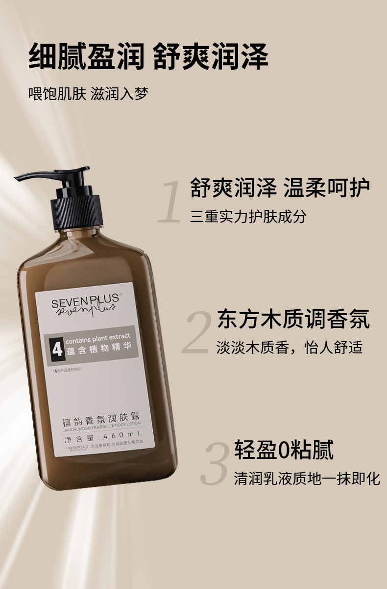 SEVEN PLUS檀韵木质香香氛持久留香 檀韵润肤露 460ml(新旧包装随机发货)