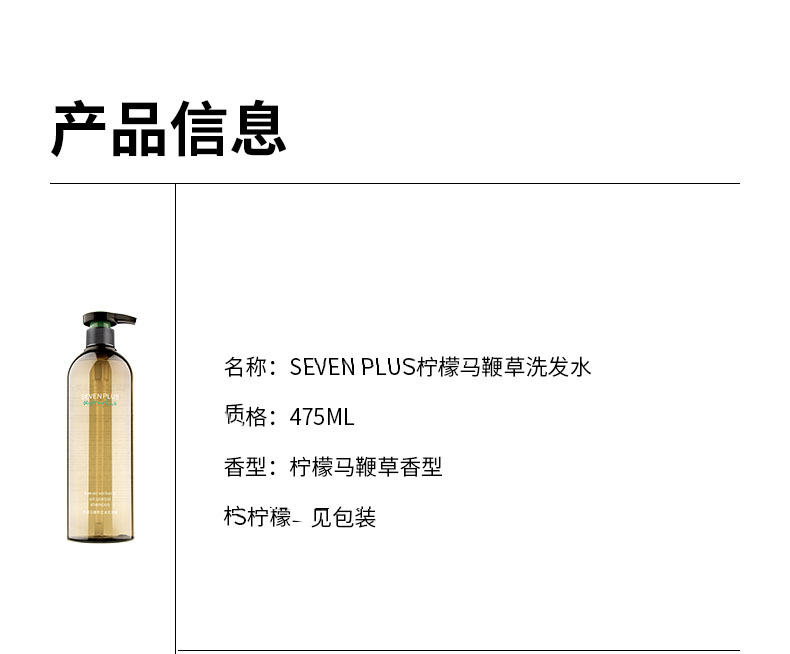 SEVEN PLUS柠檬马鞭草香氛洗发水控油清爽去油蓬松洗护475ml 男士女士通用(新就包装随机发货)