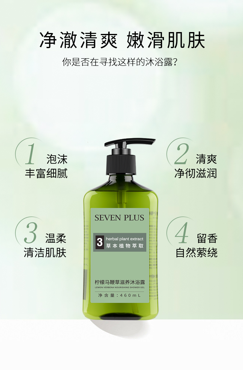 SEVEN PLUS柠檬马鞭草香氛沐浴露持久留香爽肤保湿沐浴乳沐浴液 460ml*2(新旧包装随机发货)