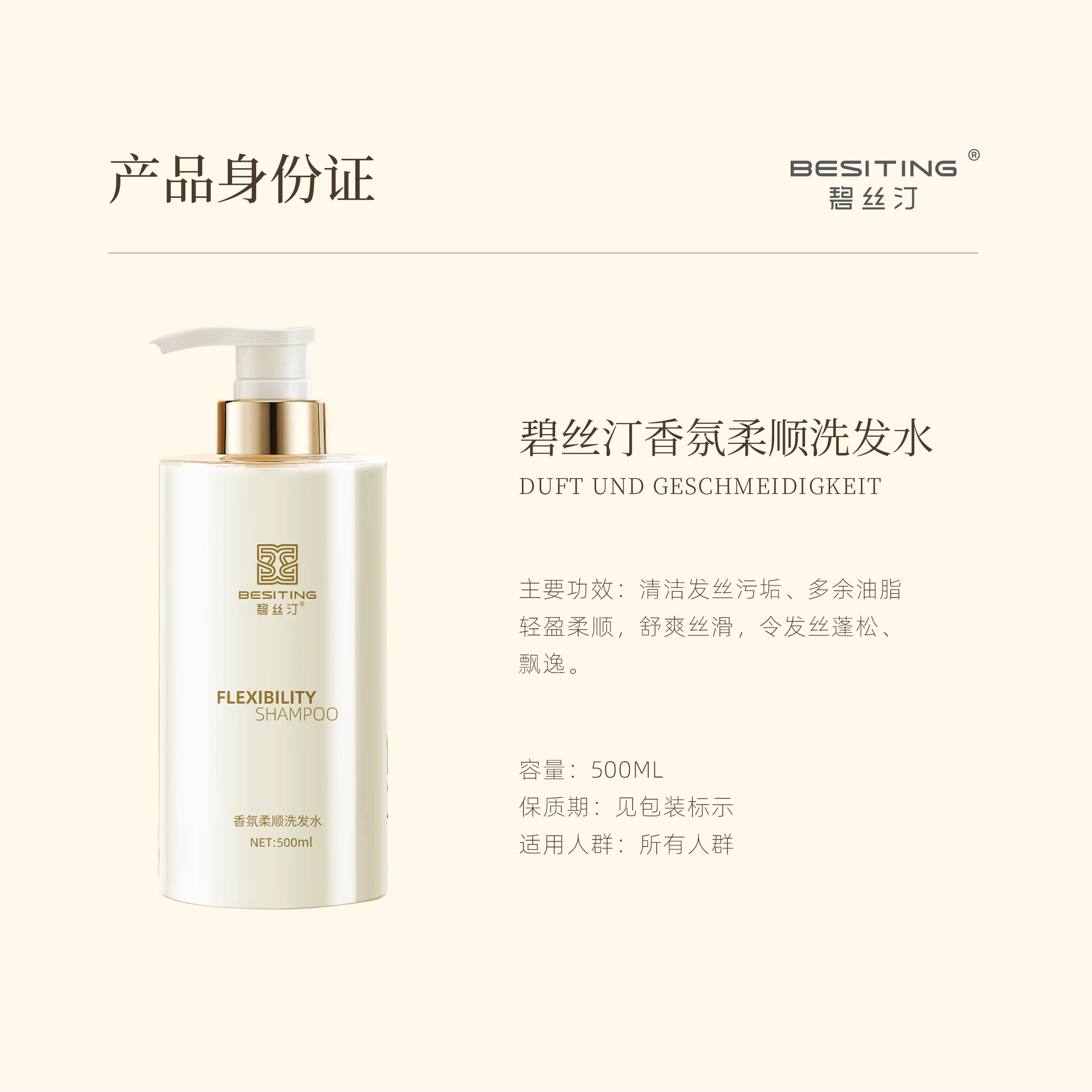 BESITING碧丝汀香氛柔顺洗发水500ml(无礼盒)