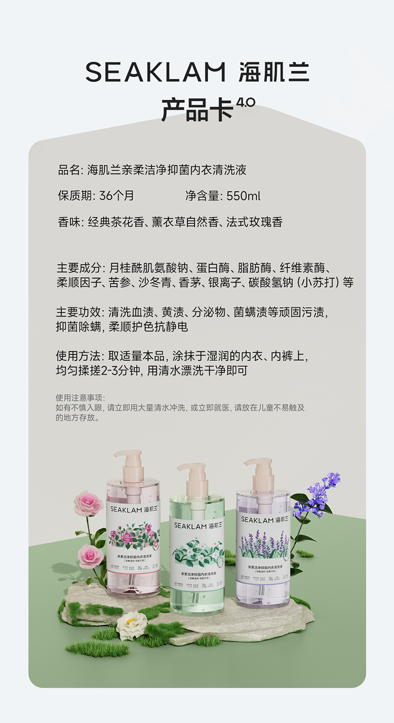 海肌兰亲柔洁净抑菌内衣清洗液550ml+80ml