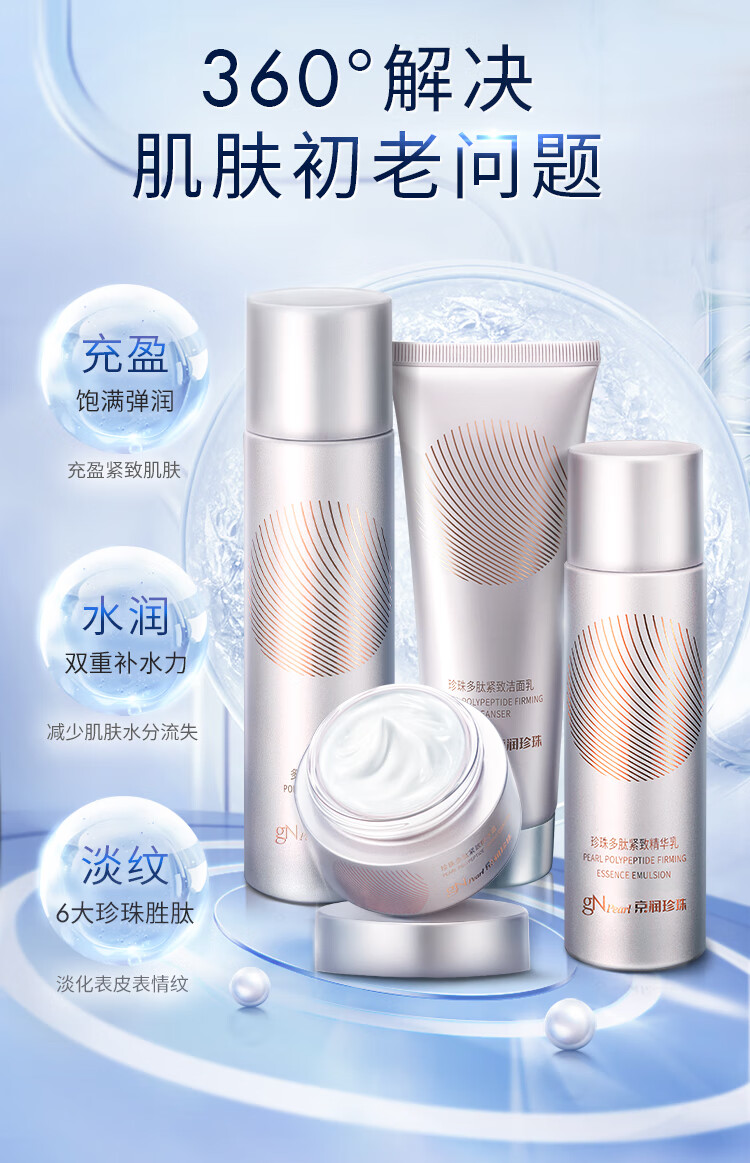 京润珍珠 多肽紧致淡纹抗皱护肤套装 四件套洁面乳120g+珍珠水120ml+精华乳80g+精华霜50g