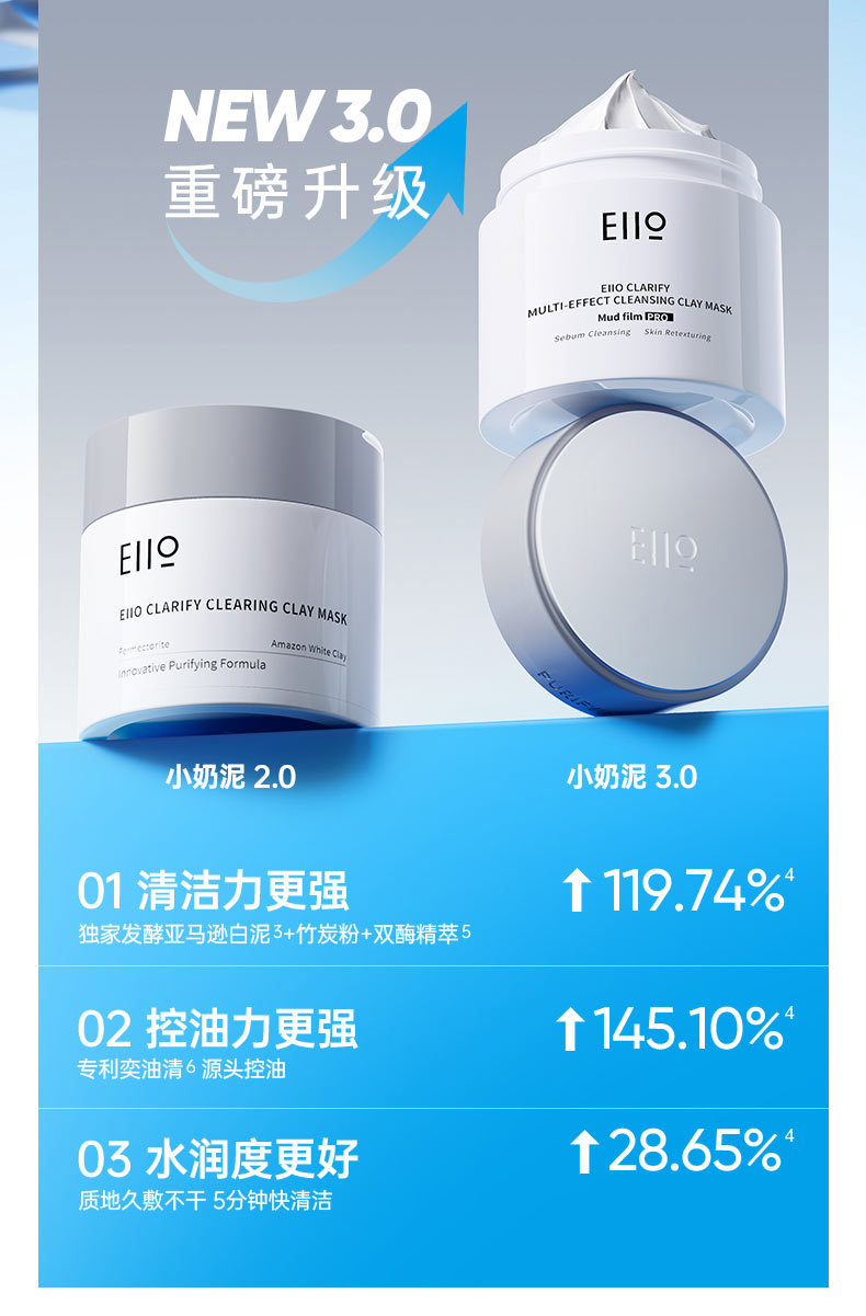 【官方正品】eiio清洁面膜/奕沃泥膜去黑头白泥膜净澈补水第三代升级款100g