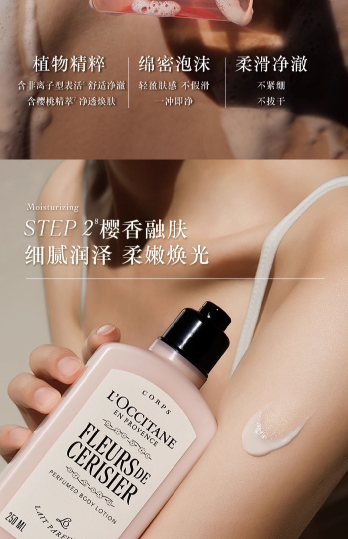 完税进口 欧舒丹全新甜蜜樱花香氛套装(250ml+250ml+30ml)赠礼袋