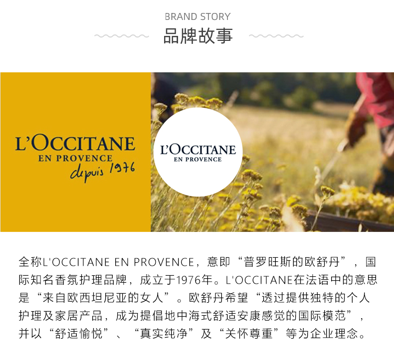 包装方式:包装 品牌:欧舒丹L'OCCITANE 包装单位:瓶 原产地:法国
