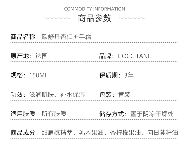 包装方式:包装 品牌:L'OCCITANE/欧舒丹 包装单位:ml 原产地:法国