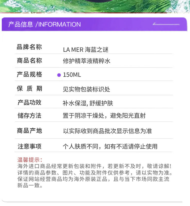 保税直供【保税直发】海蓝之谜精粹水150ml面部精华滋润保湿补水