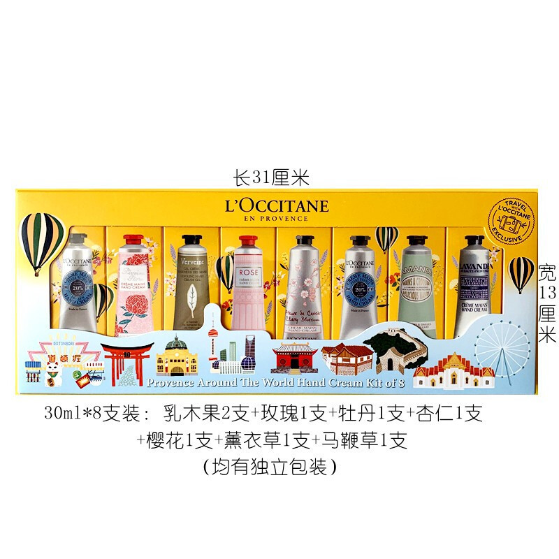 L’OCCITANE欧舒丹护手霜8件套+樱花身体乳30ml+樱花沐浴露30ml(赠送手提袋) 护手霜8件套 效期至2026年10月