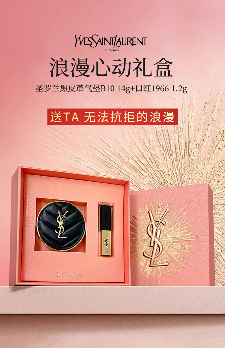 香港直邮【香港直邮】圣罗兰黑皮革气垫B10 14g+YSL圣罗兰小金条口红1966号 1.2g 效期2027年1月