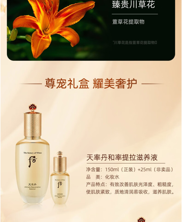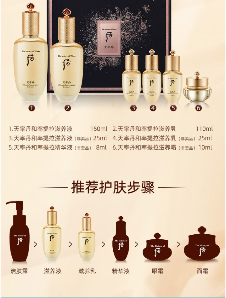 韩国WHOO/后天率丹6件套补水改善肌肤光泽提拉紧致