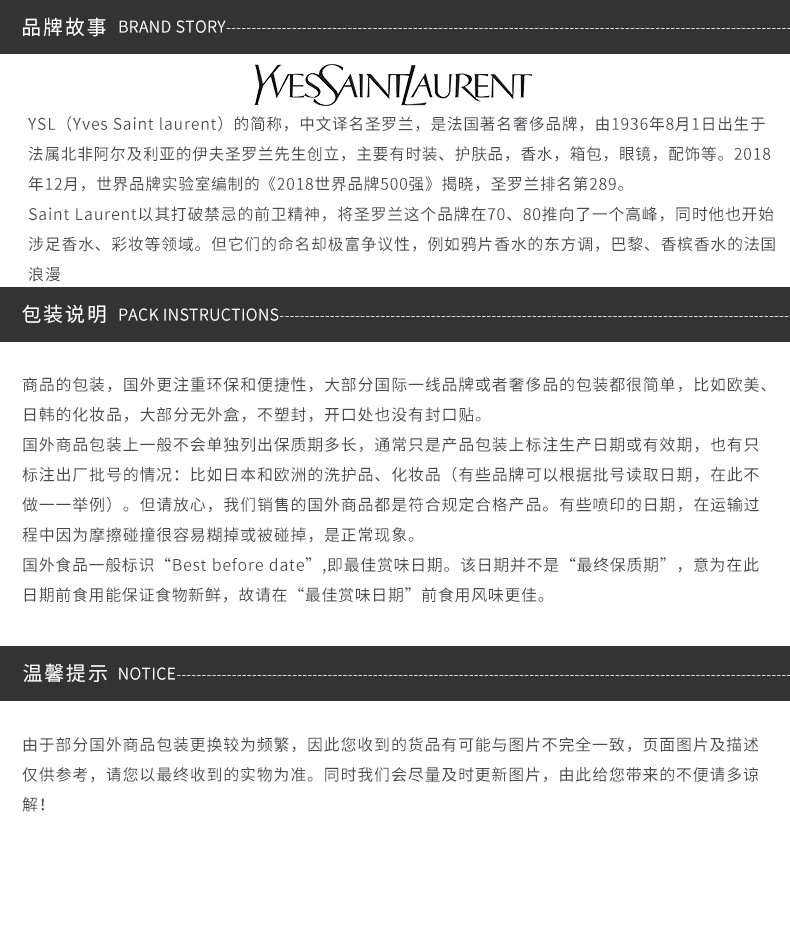 包装方式:包装 品牌:YSL/圣罗兰 包装单位:瓶 原产地:法国