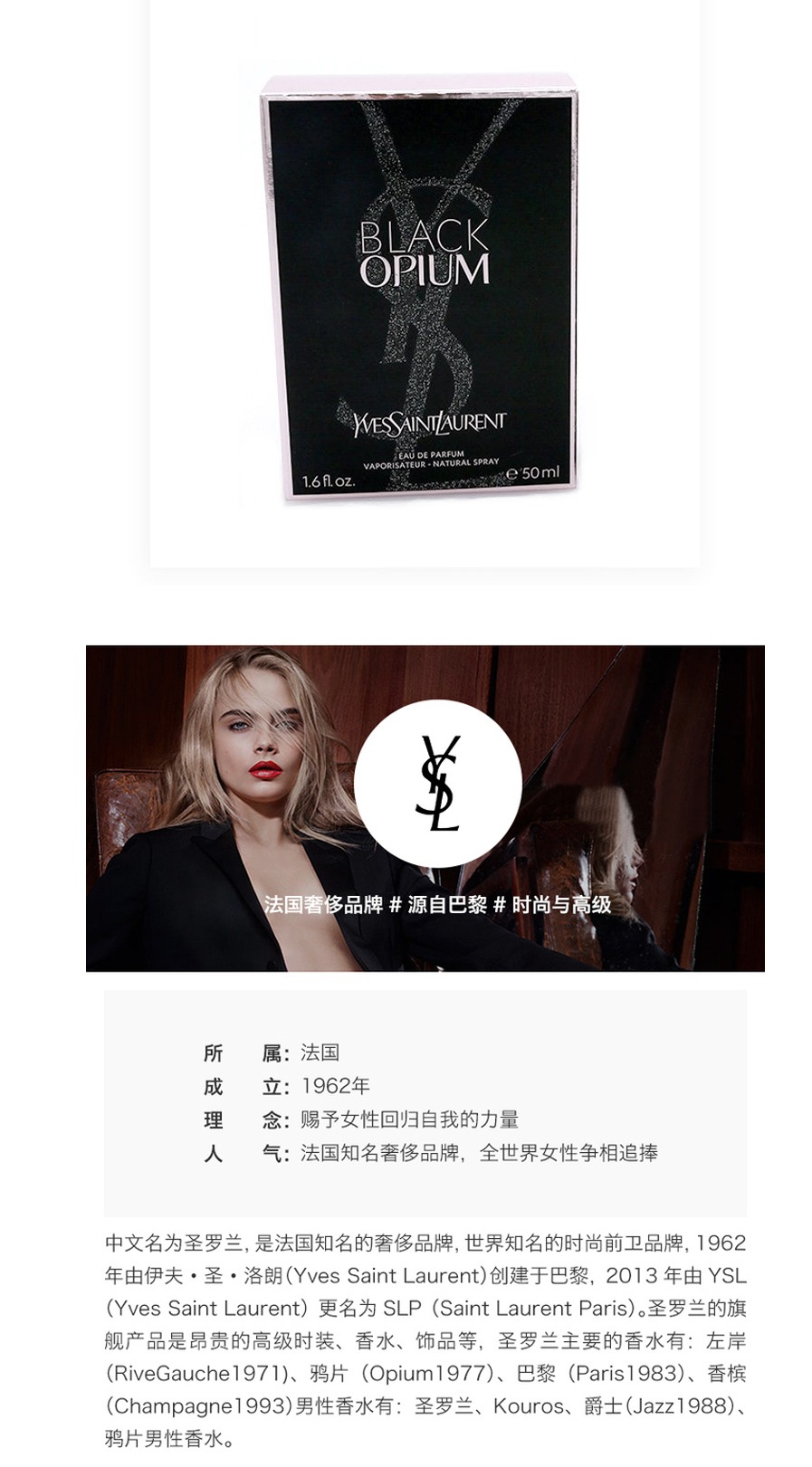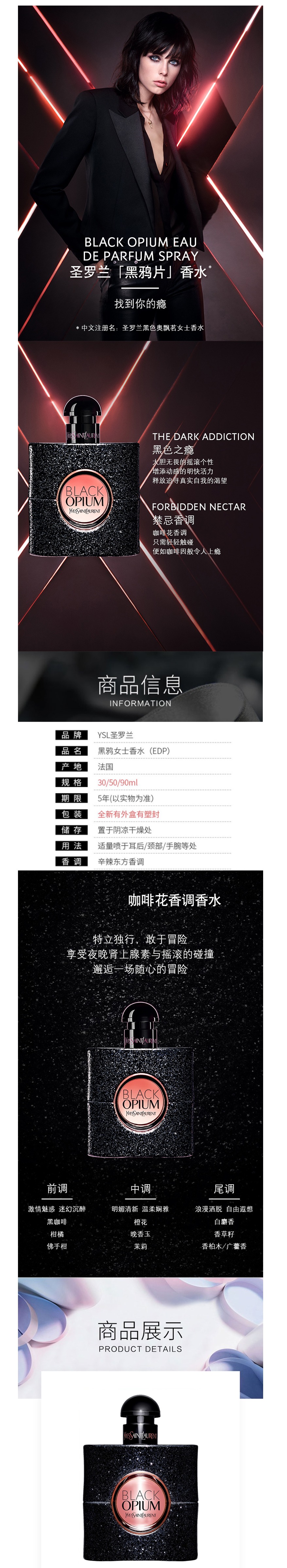 法国YSL圣罗兰 Black Opium edp黑色奥飘茗女士黑鸦片性感女士浓香水 50ml