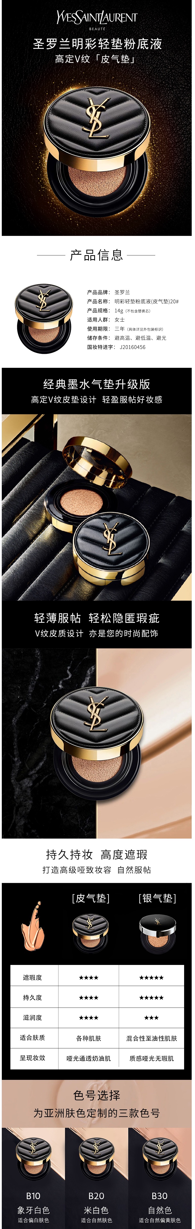 【小样尝鲜】ysl圣罗兰明彩轻垫粉底液皮革气垫 色号20 5g