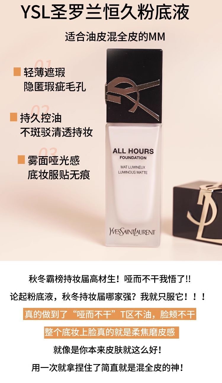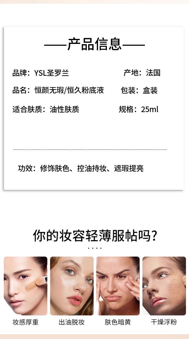 YSL圣罗兰恒久粉底液轻透服帖持久不脱妆自然遮瑕25ml LC1# 效期至2027年09月