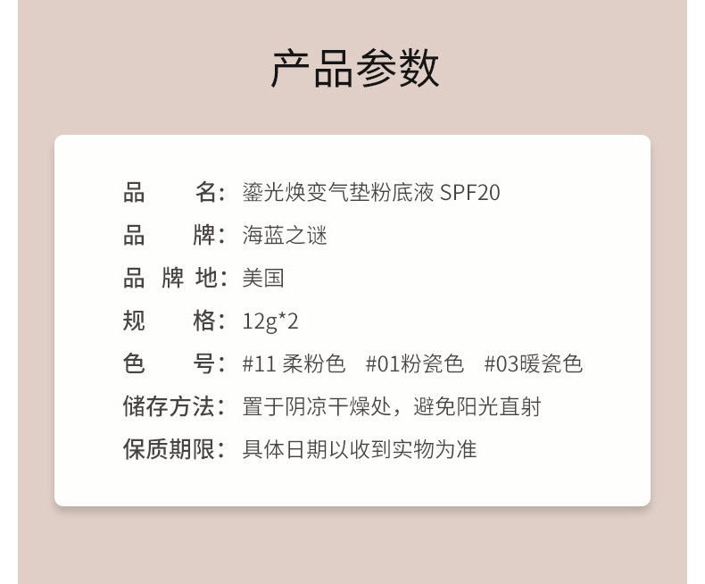香港直邮【香港直邮】LA MER/海蓝之谜 鎏光焕变气垫粉底液 SPF20 ROSE IVORY 12G*2 11#(一壳两芯)