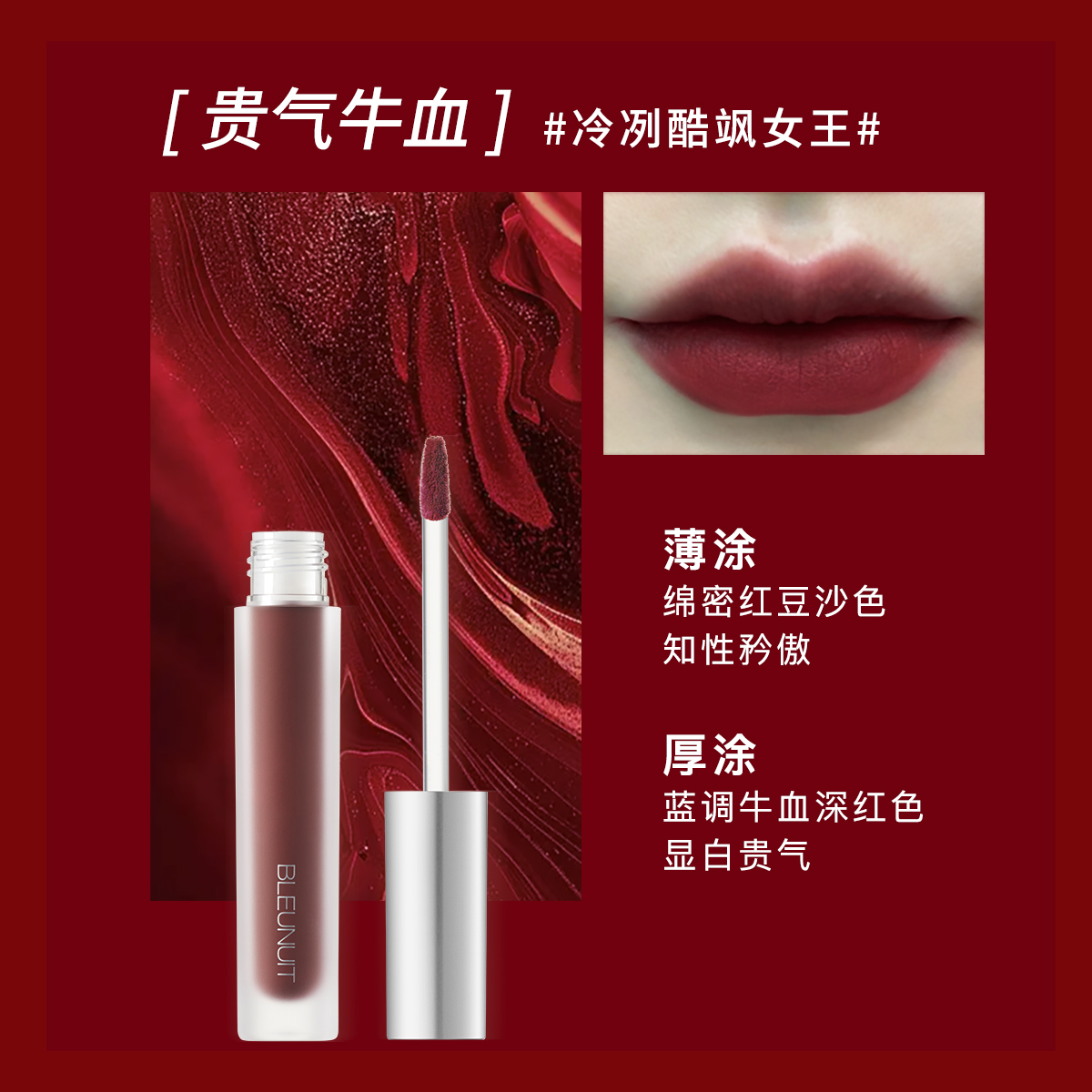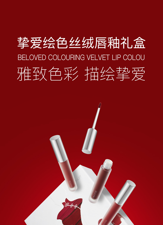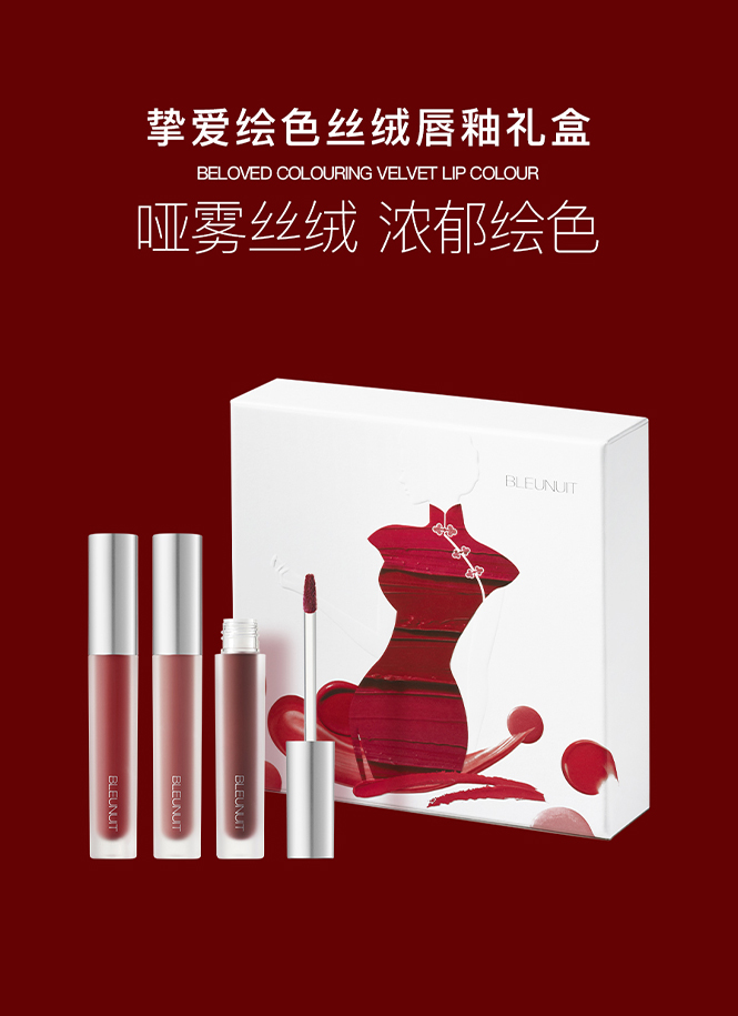 深蓝彩妆挚爱绘色丝绒唇釉礼盒(玫瑰茶棕2.5g+贵气牛血2.5g+苹果正红2.5g) 防水持久不易脱色