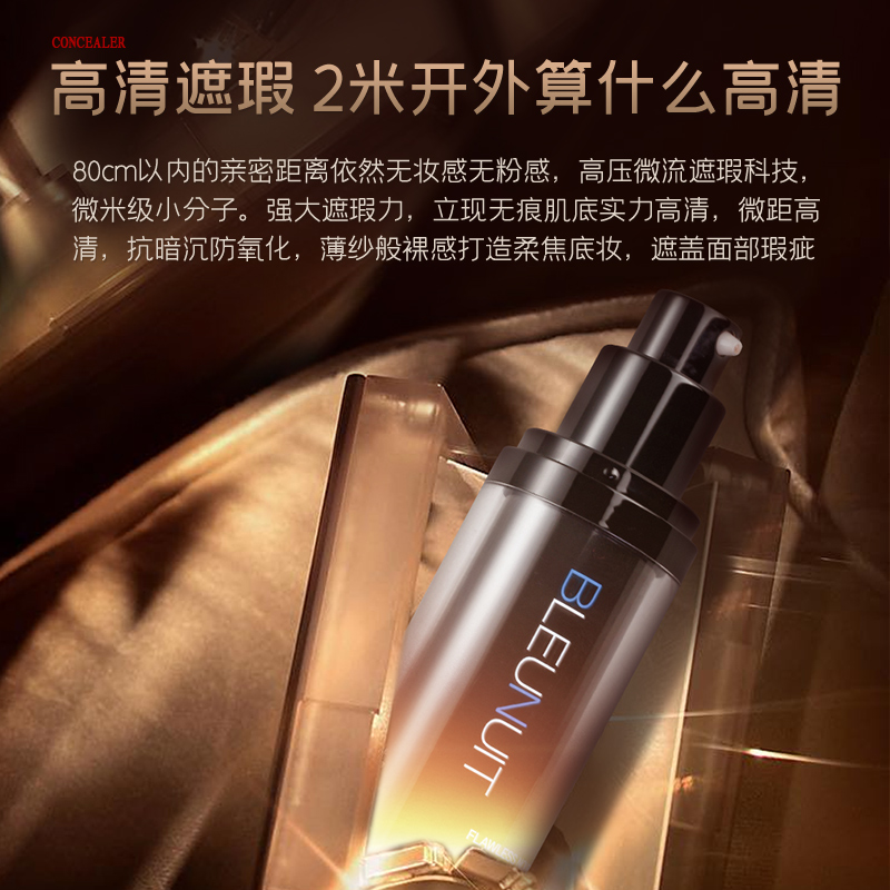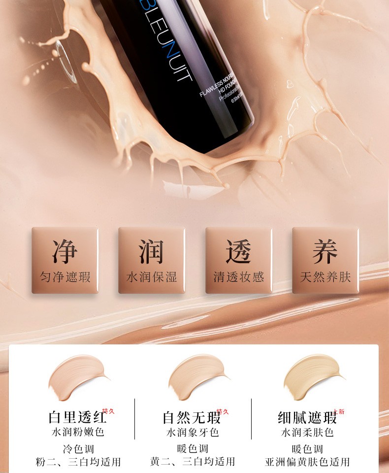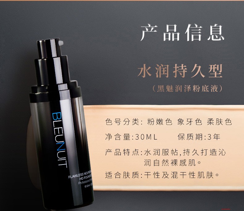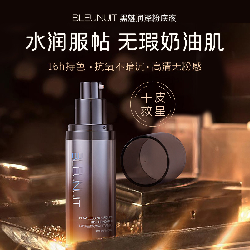 深蓝彩妆黑魅润泽粉底液粉嫩色30ml 遮瑕保湿控油持久防水不易脱妆