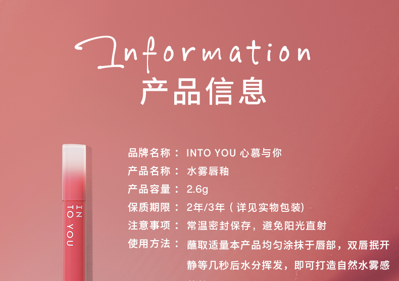 INTO YOU心慕与你水雾唇釉W04 持久雾面显白2.6g