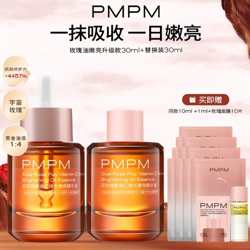 PMPM偏偏玫瑰油30ml+替换装30ml(随机赠:同款玫瑰油10ml+1ml+玫瑰面膜10片)