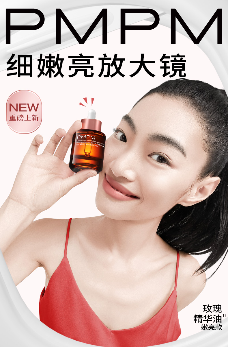 PMPM双玫瑰聚维C焕光嫩亮精华油15ml嫩亮提亮紧致以油养肤面部
