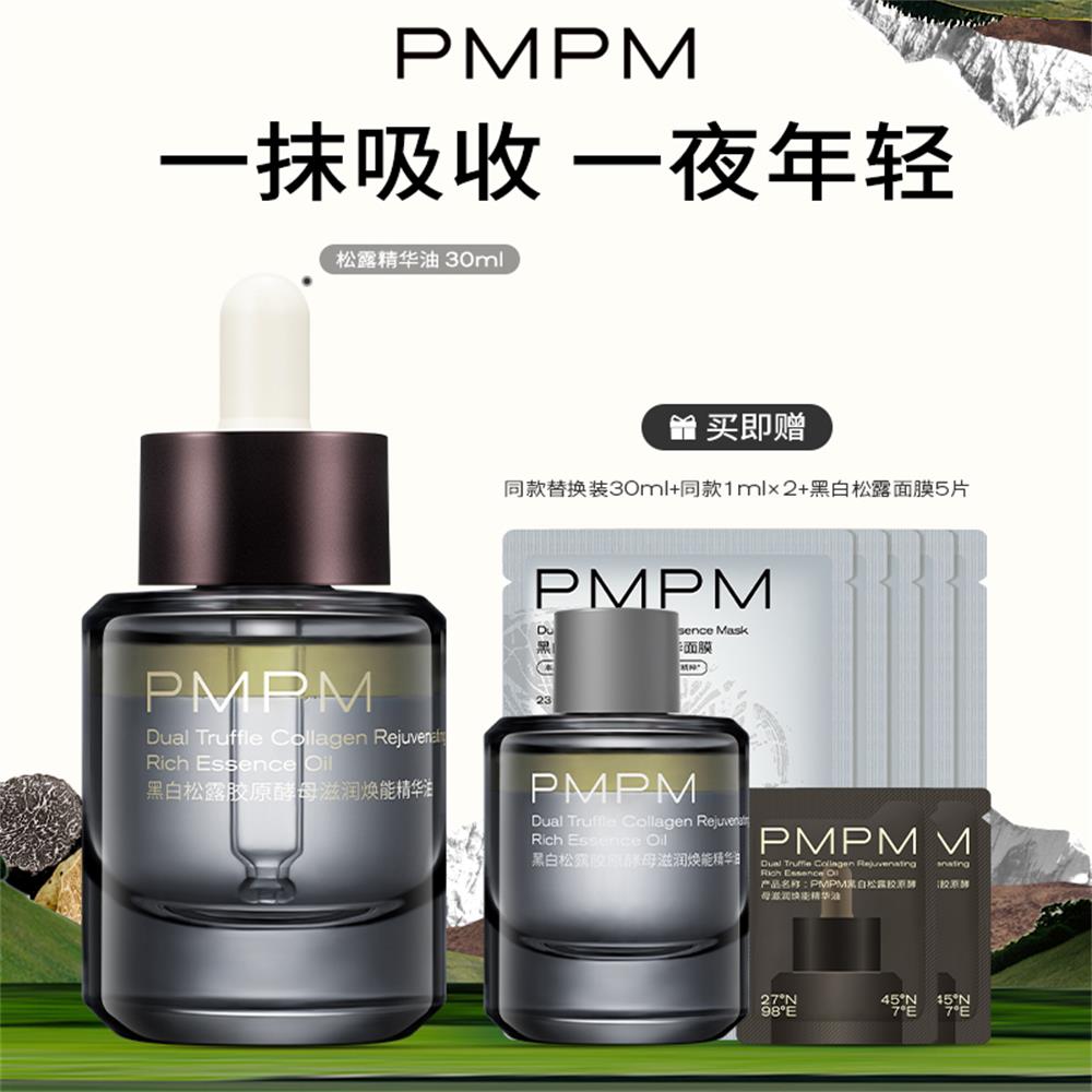 PMPM 黑白松露胶原酵母滋润焕能精华油黑金级30ml(赠替换装30ml+同款1ml*2+黑白松露面膜5片)