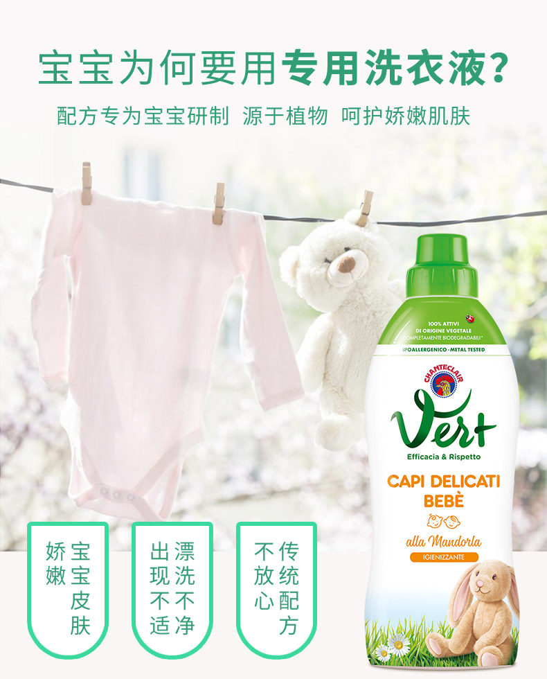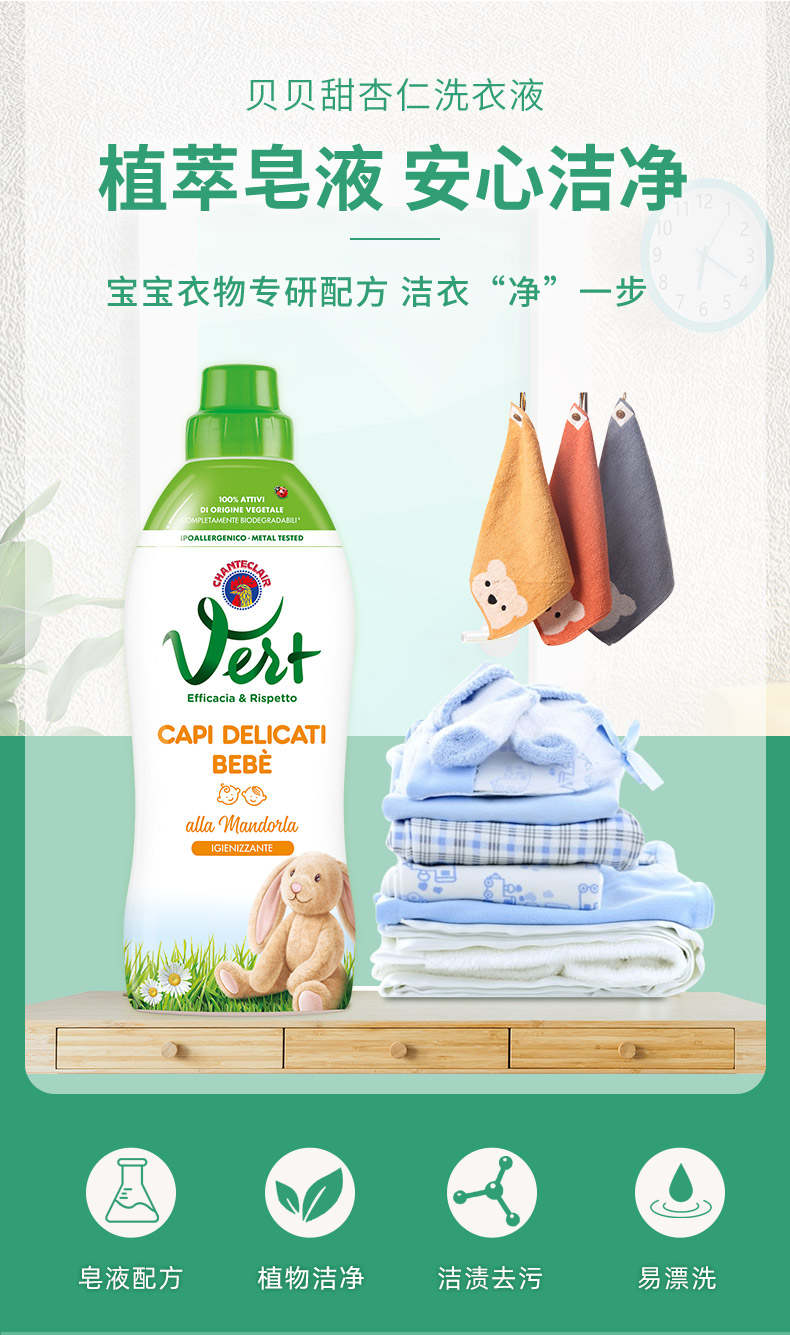 大公鸡管家 儿童贝贝甜杏仁洗衣液750ml(植物配方)