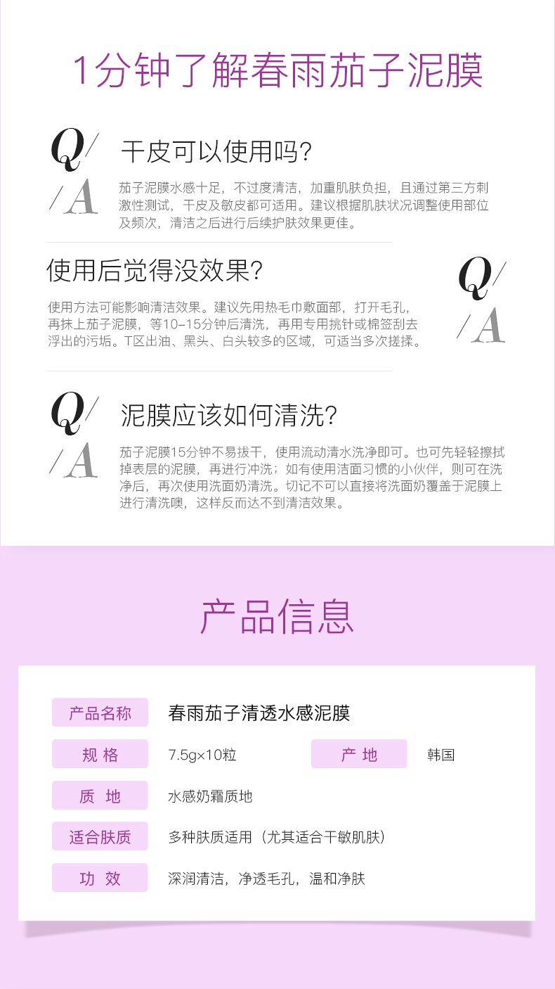 春雨茄子清透水感泥膜 深层清洁毛孔去黑头粉刺