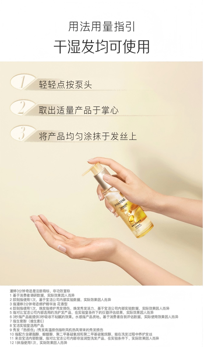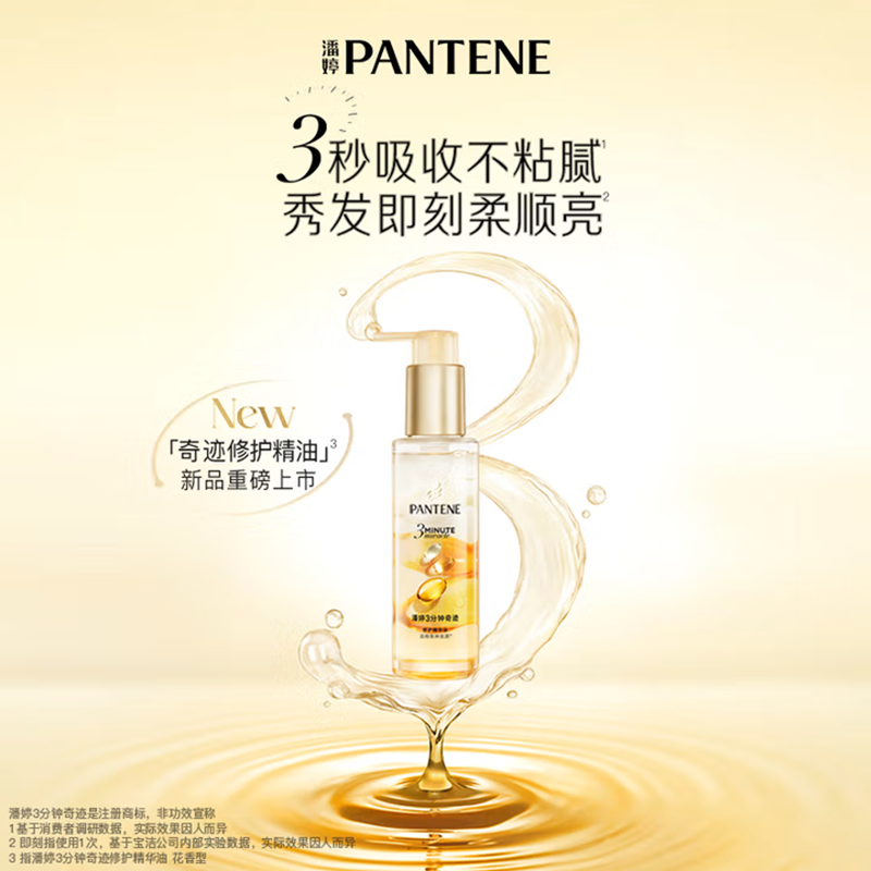 潘婷三分钟奇迹修护精华油90ml 花香型 干枯柔顺改善毛躁